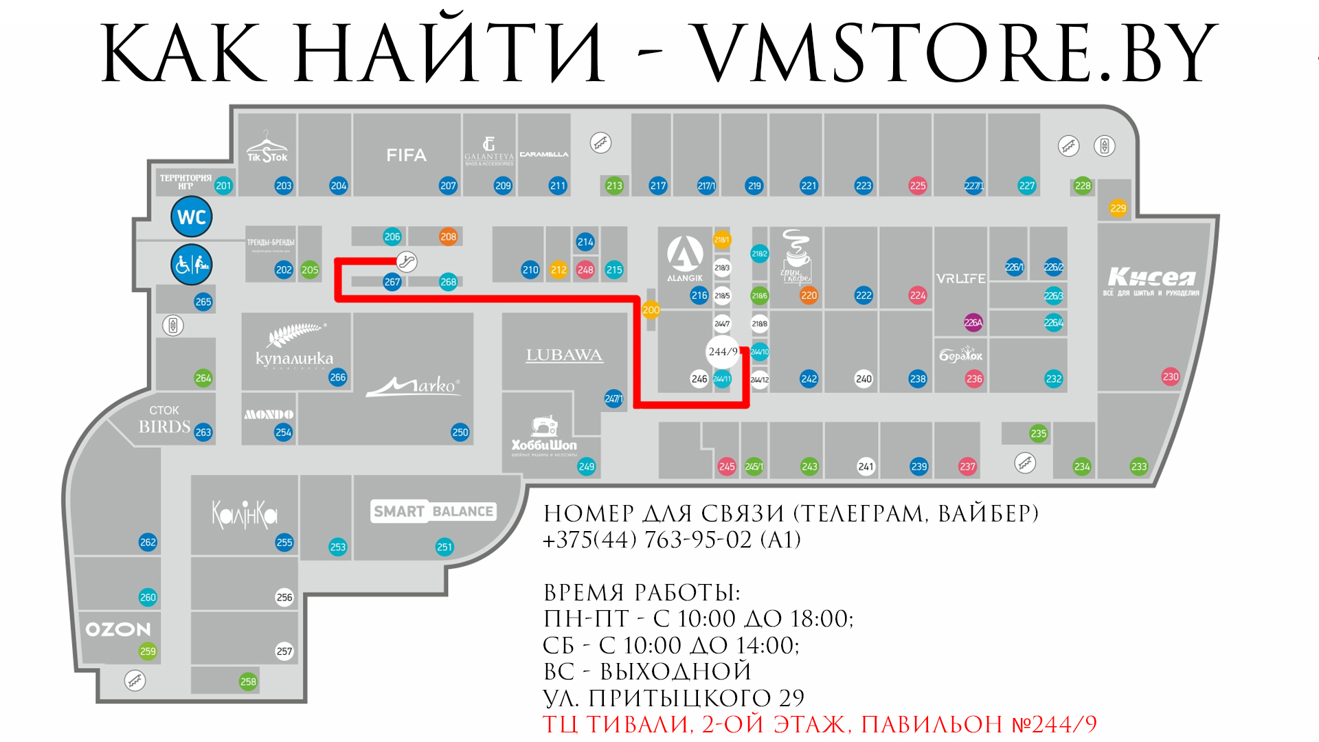 ул. Притыцкого 29, ТЦ Тивали, 2-ой этаж, павильон №244/9